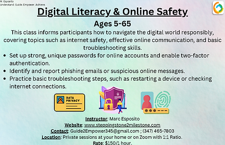 This class informs participants how to navigate the digital world responsibly, covering topics such as internet safety, effective online communication, and basic troubleshooting skills.